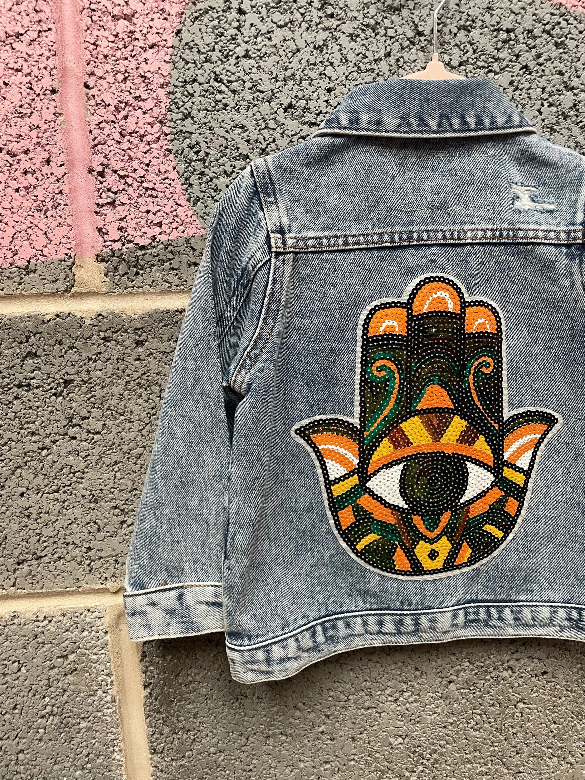 EsmeAndTheEye up-cycles second-hand denim jackets and gives them a new lease of life by adding beautiful embroidered textiles. Each piece is hand picked by Esme and loving re-worked to create a hippie unique jacket. Esme designs each piece unique so you will never find two the same.
