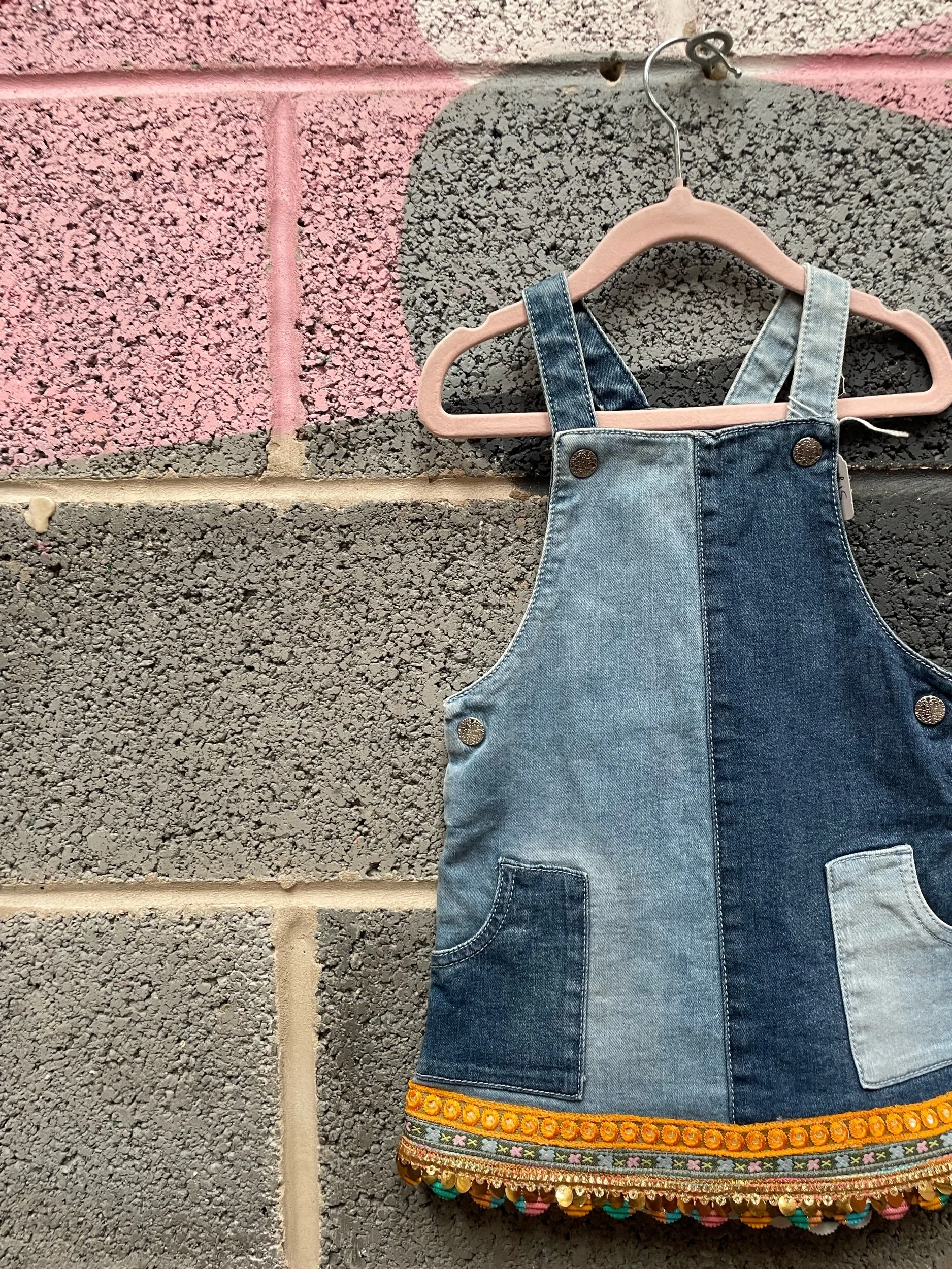 Esmeandtheeye Elsie embroidered denim pinafore dress.