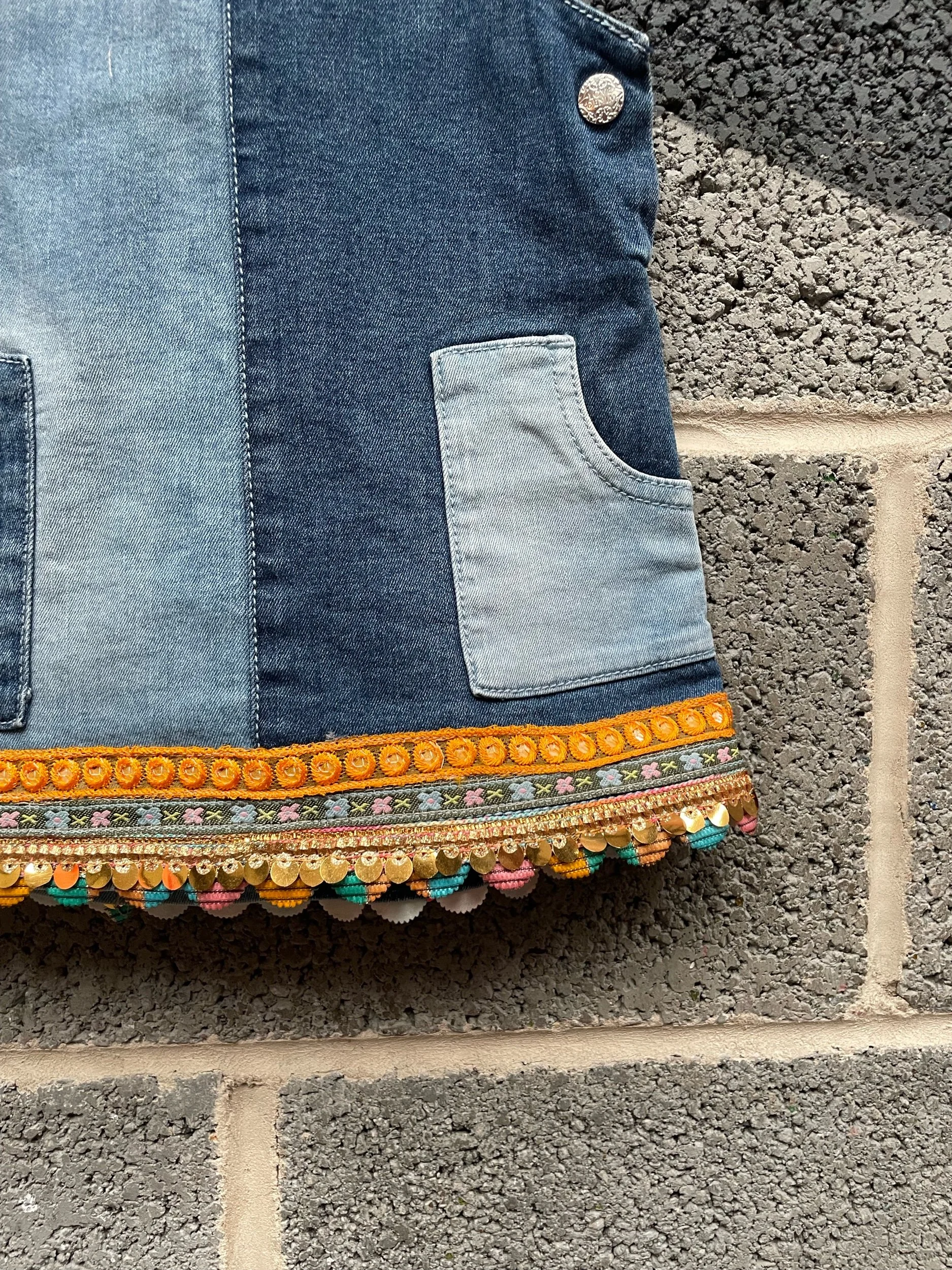 Embroidered hem using gorgeous multi coloured Indian braid.